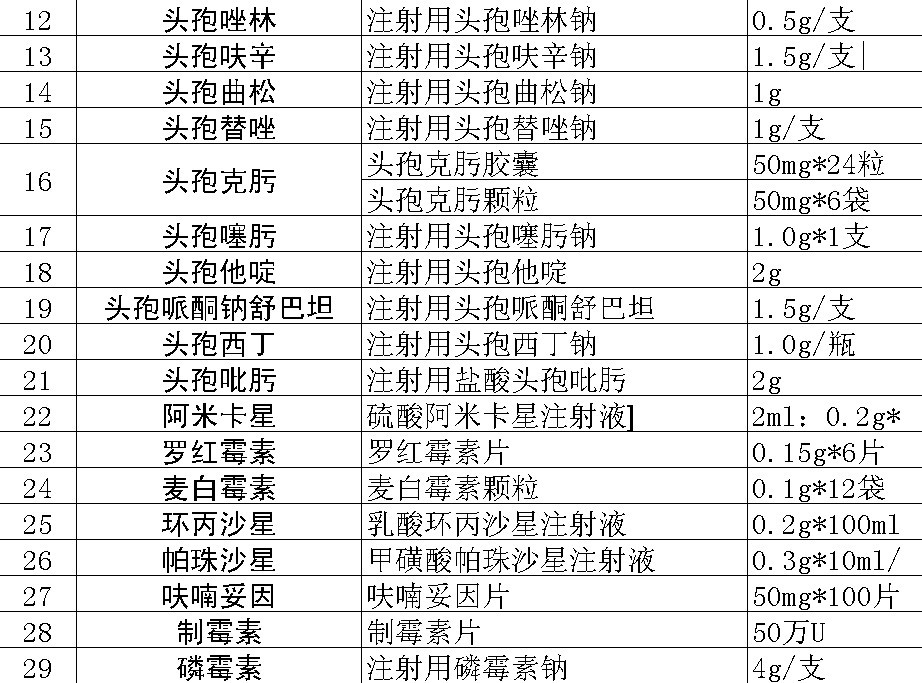 瀘州市中醫(yī)醫(yī)院抗菌藥物備案公示表