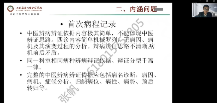 瀘州市中醫(yī)病案質(zhì)量控制中心(以下簡稱質(zhì)控中心)11月15日,以線上會議的方式順利召開省級繼續(xù)教育項目—《基于DIP下的中醫(yī)病案管理專題培訓(xùn)班》。本次會議,我們榮幸的邀請到了四川大學(xué)華西醫(yī)院病案科莫春梅科長、成都大學(xué)附屬醫(yī)院原質(zhì)控部楊建南主任、四川省中醫(yī)病案質(zhì)控中心劉鵬主任、瀘州市中醫(yī)醫(yī)院張帆主任等為我們進(jìn)行了“醫(yī)保DIP分值付費、績效考核、中醫(yī)病歷書寫、病案首頁填寫規(guī)范、編碼主導(dǎo)詞填寫”等課程的精彩授課。