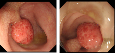 發(fā)病年齡在2-10歲,多發(fā)于直腸、乙狀結(jié)腸,85%為單發(fā),14%為2,3個并發(fā),90%以上發(fā)生在直腸或乙狀結(jié)腸,多位于直腸內(nèi)距肛門3~4cm到7~8cm處,少數(shù)也可發(fā)生于右半結(jié)腸,其發(fā)生原因可能在過敏的基礎(chǔ)上,由于硬便的損傷,慢性炎癥引起,開始腸黏膜呈慢性炎變而有局限性肉芽增生,漸漸增大形成1cm左右直徑的息肉,多呈球形,表面光滑或呈結(jié)節(jié)狀紅色,隨腸蠕動的牽拉息肉根部逐漸形成黏膜蒂,最后隨腫物的增大而蒂變細。
