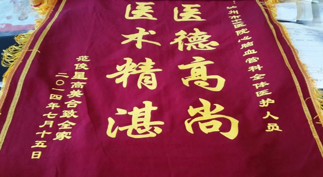 7月15日患者范俊星全家為內一科醫(yī)護人員送來錦旗一面,感謝他們的悉心照顧。