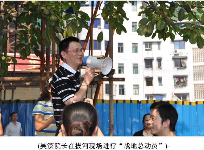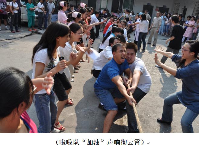 ? 9月29日下午,醫(yī)院黨委、團(tuán)委、工會(huì)聯(lián)合主辦了“慶國(guó)慶中秋游園活動(dòng)”,全院職工(除值班人員外)參加了本次活動(dòng)。在醫(yī)院操場(chǎng)展開了一場(chǎng)精彩、激烈的“拔河比賽”,各隊(duì)“大力士”憋足全身氣力,在此起彼伏的吶喊聲中,齊心協(xié)力而有節(jié)奏地開始“PK”。但見這些平時(shí)拿針、拿藥的,文靜、靦腆的小伙子和姑娘們,個(gè)個(gè)圓瞪雙眼、漲紅著雙臉,拼命地緊拉繩索,有的鞋子蹬掉了,有的褲子磨破了……。歡聲笑語響徹云霄,每個(gè)人都是那樣的開心,因?yàn)榇蠹抑溃褐匾牟皇敲?,而是增進(jìn)了大家團(tuán)結(jié)奮進(jìn)的協(xié)作力!這種團(tuán)隊(duì)精誠(chéng)協(xié)作的精神正是中醫(yī)醫(yī)院人孜孜不倦所追求的精神!