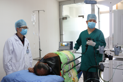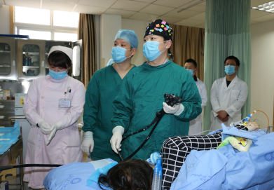 ?????????????????? ? 我院脾胃病科(消化內(nèi)科)醫(yī)生正在為患者做經(jīng)內(nèi)鏡粘膜下剝離術(shù)